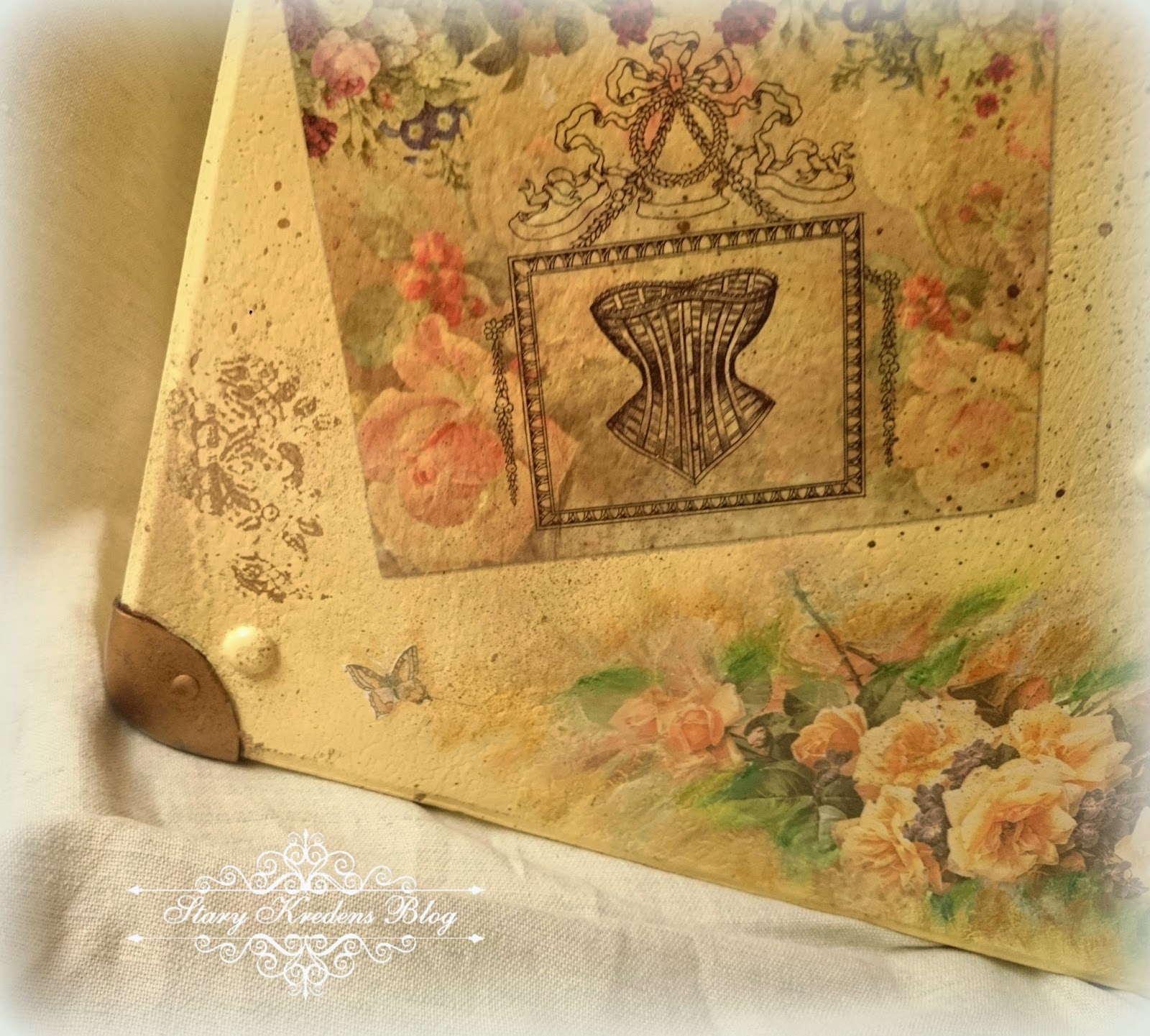 Przejrzałam papiery od Jednoskrzydłej z Drzewa Sekretów i stwierdziłam , że te herbaciane róże będą idealnie pasować.Dość długo w moim kredensie leżał papier ryżowy z motywem gorsetów.
